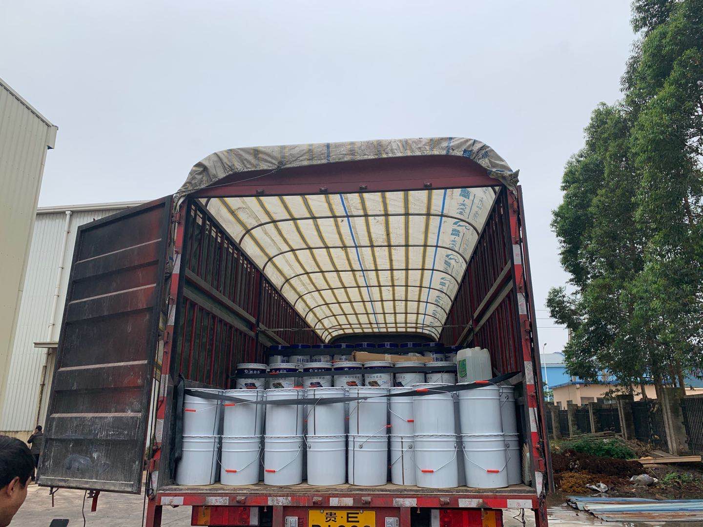 出貨:貴州15噸室外鋼結(jié)構(gòu)防腐防銹油漆專(zhuān)車(chē)送到貴州工地。